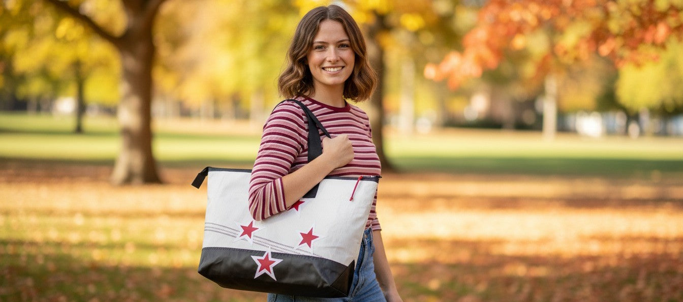 Tote-elly unique bags. It's a second wind for these sails and no two bags are the same.