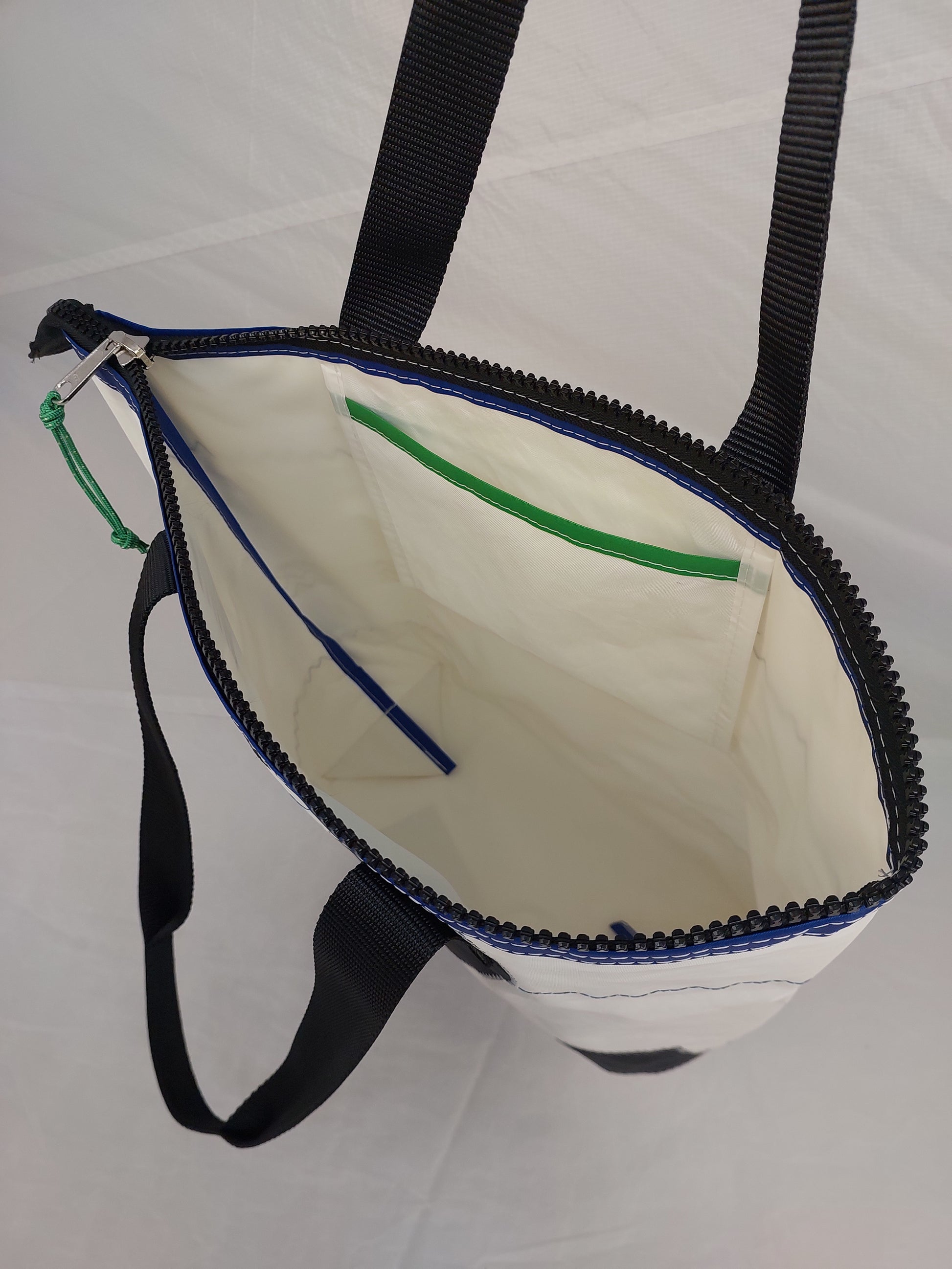 A white dacron sail with white polyester lining. Featuring sailmaker webbing handles, dacron tape trim and an internal slip pocket. We only use the best YKK marine zip.