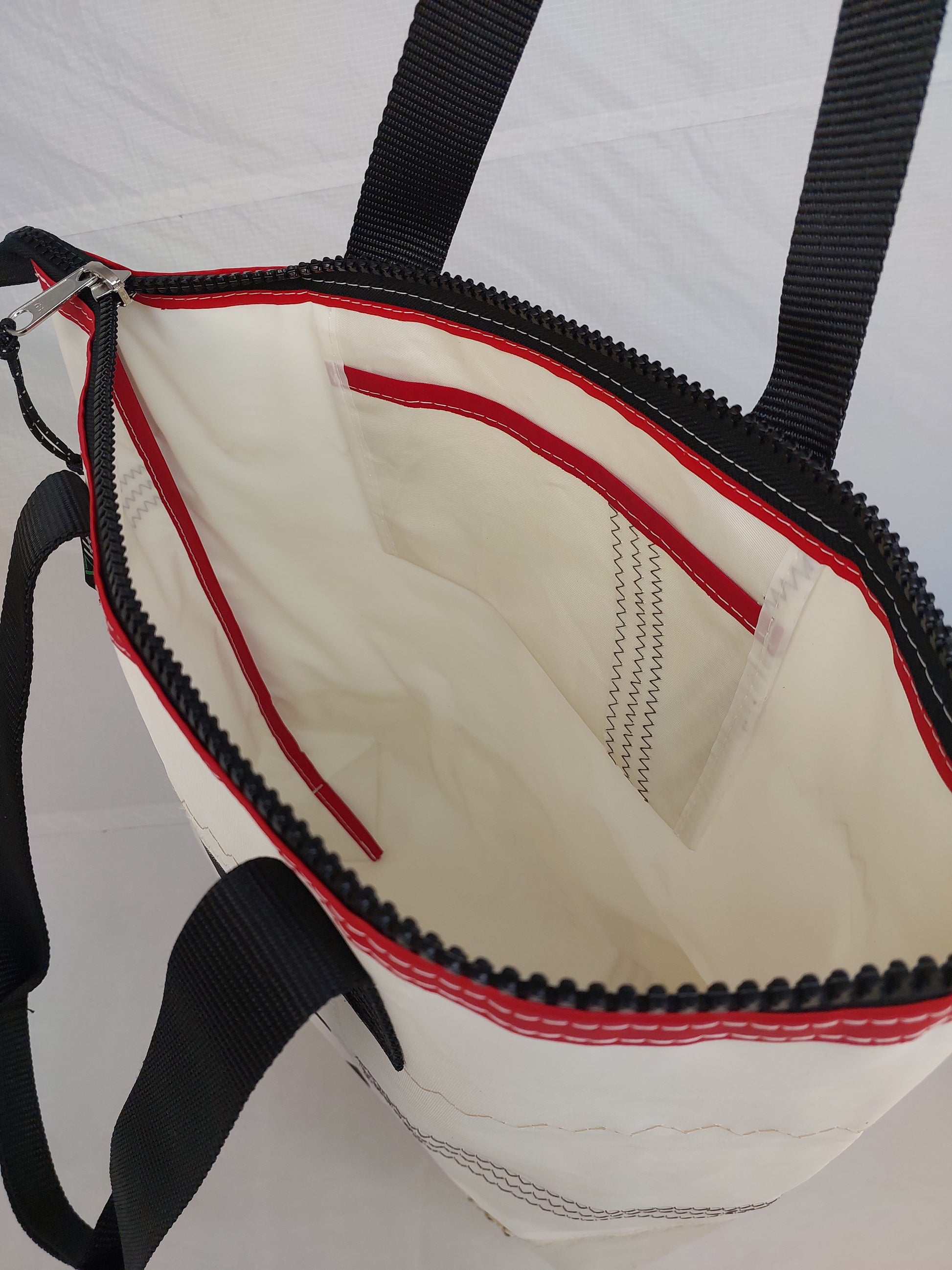 A white dacron sail with a white polyester lining Featuring sailmaker webbing handles, dacron tape trim and an internal slip pocket. We only use the best YKK marine zip.