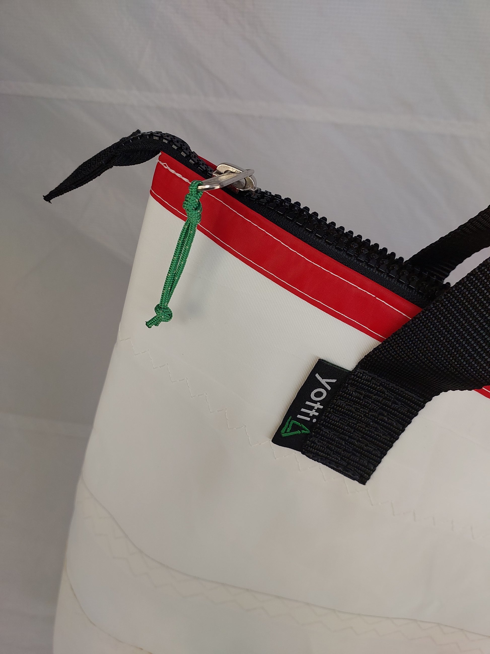 A white dacron sail with a white polyester lining Featuring sailmaker webbing handles, dacron tape trim and an internal slip pocket. We only use the best YKK marine zip.