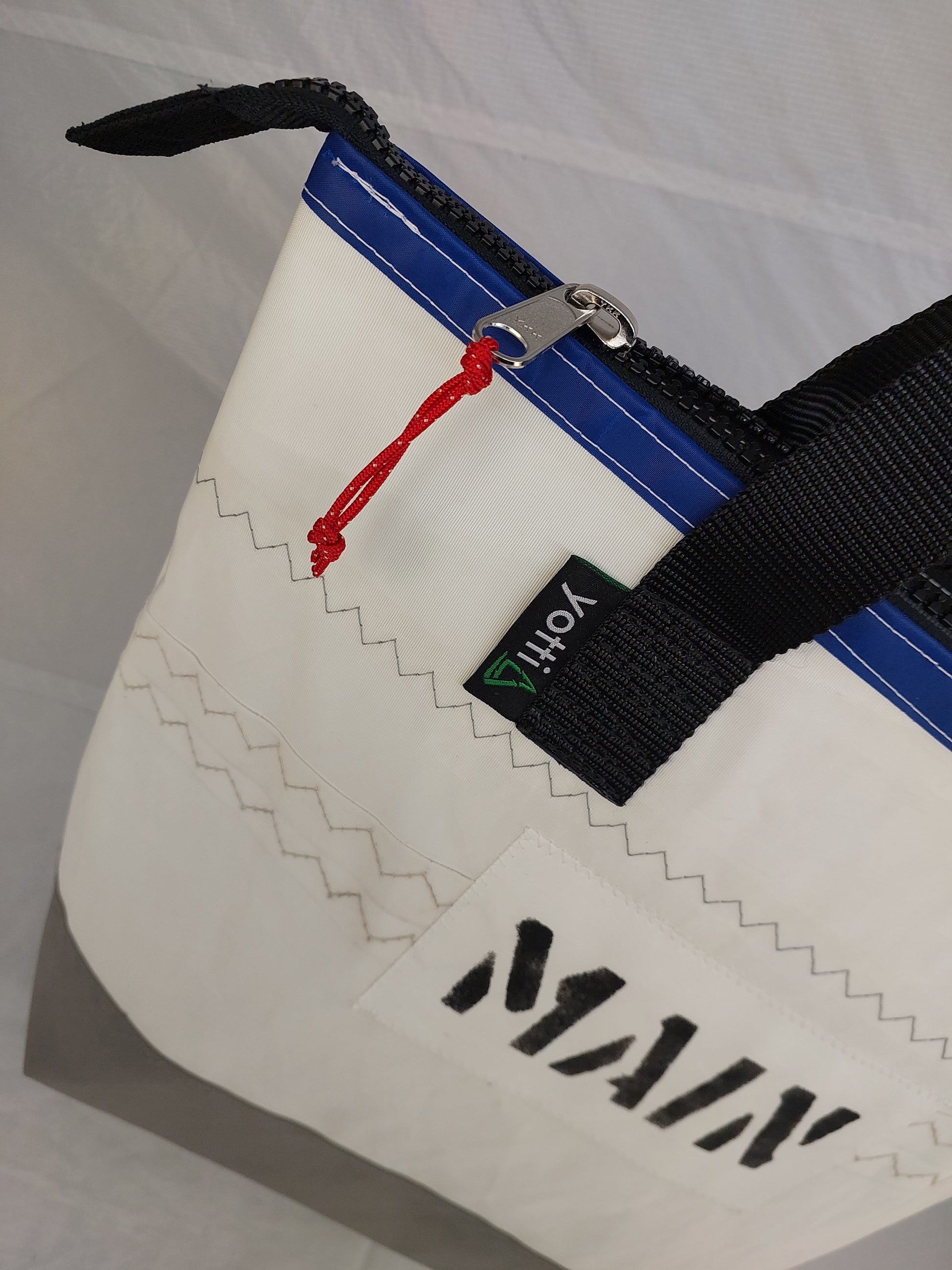 A white dacron sail with a white polyester lining Featuring sailmaker webbing handles, dacron tape trim and an internal slip pocket. We only use the best YKK marine zip.