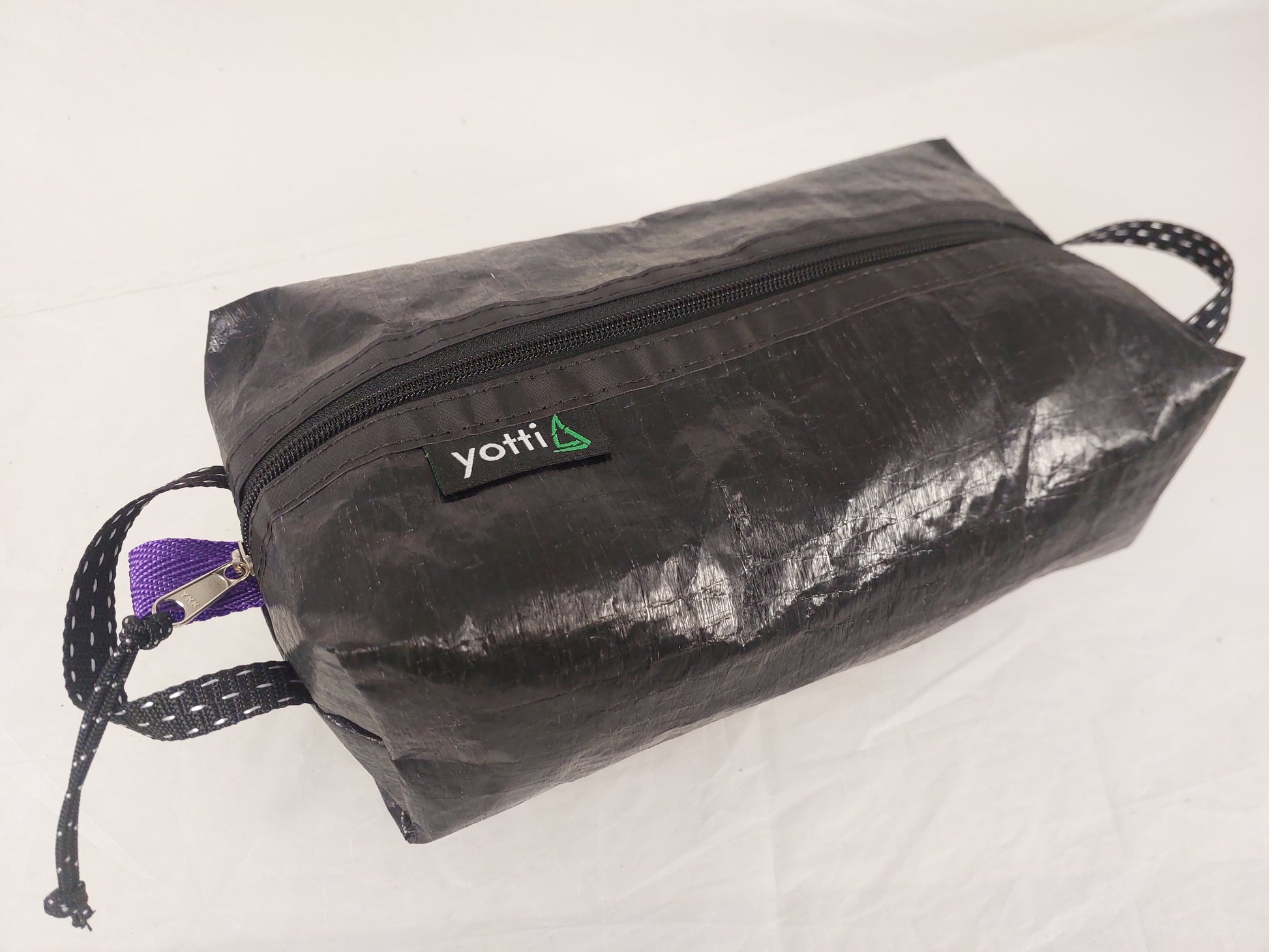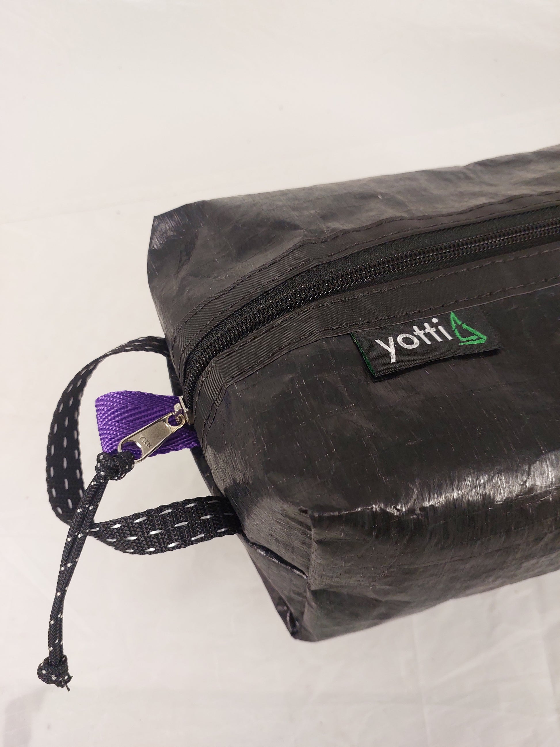 The Mini Kit Bag (MKB) is our most compact option, crafted from black carbon fibre with a striking purple interior. Its durable zippered design is perfect for organizing essentials—whether as a wash bag, tool kit, first aid kit, travel underwear pouch, or a sailing crew bag for gloves and sun protection. Made from recycled race sails and reinforced with dacron sail tapes and premium YKK zippers, it combines sustainability with resilience. Measuring 30cm L x 16cm W x 10cm H, it also makes an excellent gift bag to fill with your favourite items.