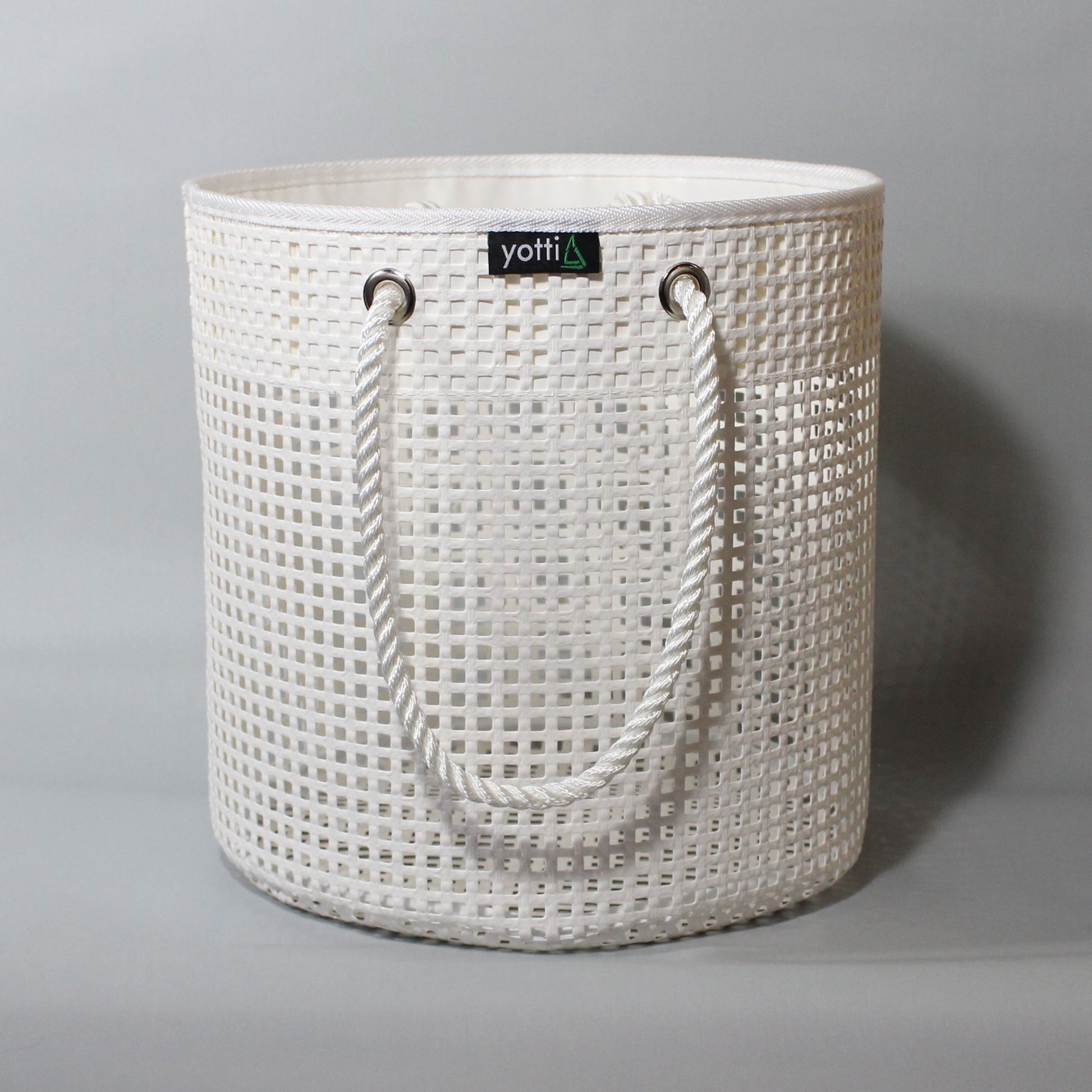 These baskets are built from ridiculously tough marine mesh. This fabric is designed for trampolines on large multi-hull yachts and architectural screens so it's weather proof, incredibly strong and even has a fireproof rating!